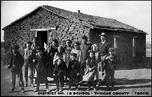 Here are some charming photos of schoolhouses of yesteryear, courtesy of the Kansas One Room Schoolhouse Project. Easily my favorite is the sod construction of the District 15 School in Thomas Country, shown above. That was probably an excellent idea until a prairie twister or the big bad wolf rolled through.